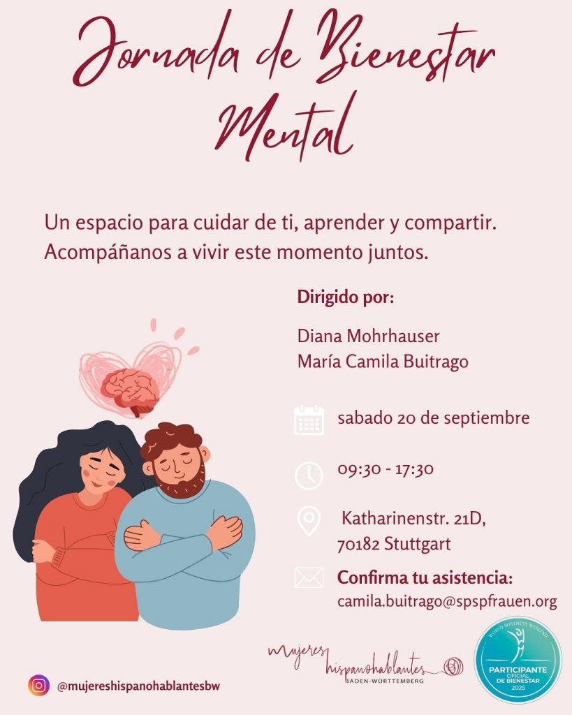 El próximo 20 de septiembre de 2025 tendremos un espacio dedicado al cuidado de la mente y las emociones en Katharinenstr. 21D, 70182 Stuttgart.